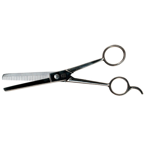 Tijera Hauptner para esculpir: • Cromada • Con 1 hoja de 30 dientes y 1 hoja de corte normal • Vaciado del 30% • Size 6 1/4 • Medida: 16 cm • Peso: 55 g