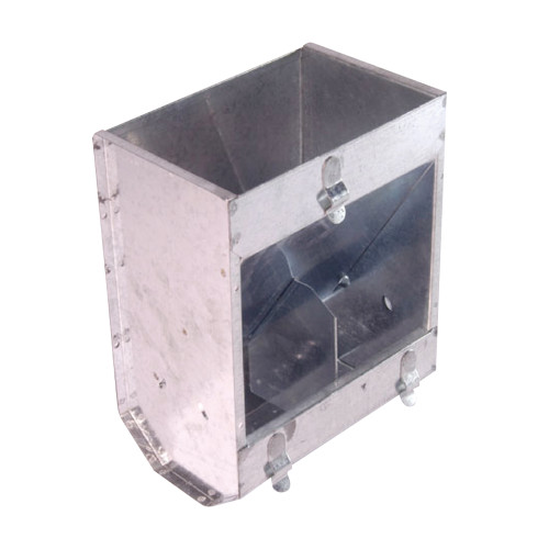Comedero para conejos: • Realizado en chapa de acero galvanizado de 0,55 mm de espesor • Suelo reforzado para eliminar el polvo • Muy robusto • Sin tapa • Medidas: 25 x 20 x 12,5 cm • Peso: 975 g