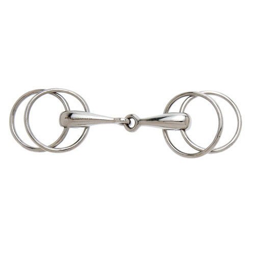 Bocados realizados en acero inoxidable y pulidos a mano. Medidas embocadura: 12,5 y 13,5 cm. Grosores embocadura: 11 y 21 mm.