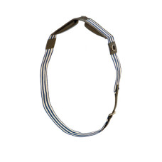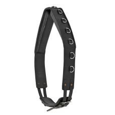 Cinchuelo fabricado en cuero. Tiene una barra redonda forrada en el centro. Hebillas dorad..