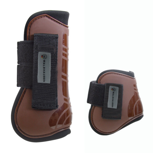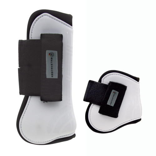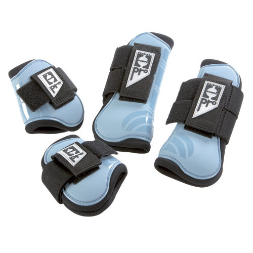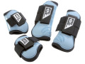 Juego completo de cuatro protectores para manos y pies con una capa exterior fuerte y dura para proteger de los impactos, neopreno interior acolchado para absorber dicho impacto y ribete muy suave para acoplarse perfectamente al contorno del caballo y darle un mayor confort. Cierres con velcro de alta calidad que aseguran un perfecto ajuste bajo cualquier circunstancia.