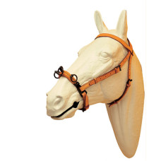 Cabezada para dar cuerda.Fabricada en cuero.Serreta de 3 pilares cromada y articulada.Hebillaje crom..