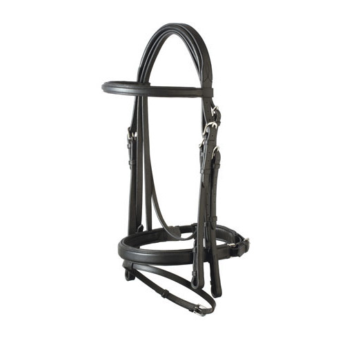 Cabezada con cierrabocas, doble rienda y doble montante para utilizar con bocado y filete. Incluye riendas dobles realizadas en cuero liso fino muy suave. Testera acolchada y anatómica. Muserola realizada en dos piezas ajustables ancha y acolchada con cierrabocas.