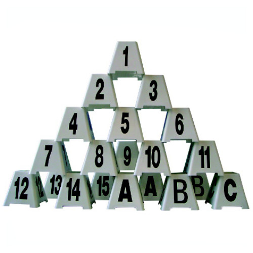 Set de 20 pirámides apilables (1-15+2A+2B+1C) Dim.: 35x35x35cm.