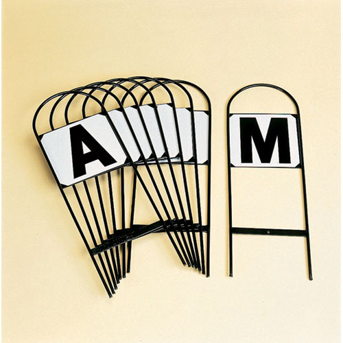 Juego de 12 letras: ABCEFHKMRSVP. Medidas 69x23 cm. Una vez clavadas en la pista, la altura sobre la que quedan es de 56 cm.