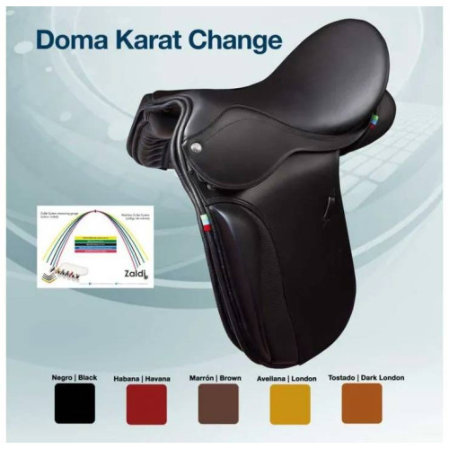 KARAT-CHANGE, basada en la New Kent: En una reunión de jinetes, tanto experimentados y profesionales como amateurs, idearon levantar la silla de atrás en su respaldo y colocar el taco delantero por fuera, hecho inusual en aquella época. Se consiguió con ello acercarse al máximo a la postura correcta para el jinete, sueño de tanto de jinetes profesionales como principiantes. Nació así la silla Zaldi KARAT CHANGE, que ha tenido una gran aceptación por parte de los jinetes durante años. Esta silla es ideal para doma, tanto para profesionales como aficionados. Además de una relación calidad precio incuestionable.