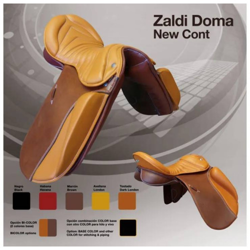 En una reunión de jinetes, tanto experimentados y profesionales como amateurs, idearon levantar la silla de atrás en su respaldo y colocar el taco delantero por fuera, hecho inusual en aquella época. Se consiguió con ello acercarse al máximo a la postura correcta para el jinete, sueño de tanto de jinetes profesionales como principiantes. Nació así la silla Zaldi NEW-CONT, que ha tenido una gran aceptación por parte de los jinetes durante años. Esta silla es ideal para doma, tanto para profesionales como aficionados. Con la incorporación del doble acolchado del asiento se ha conseguido un alto confort y comodidad para la práctica de la doma y la marcha.