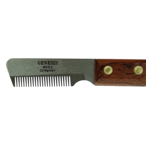 Cuchilla Trimming Genesis grande gruesa: • Para zurdos • 23 dientes • Se pasa antes que las cuchillas básicas cuando hay mucho subpelo • No utilizar con pelos muy cortos