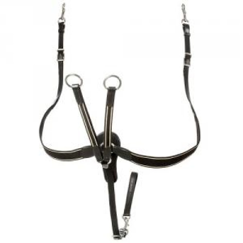 Pechopetral inglés cruzado con elásticos realizado con goma suave muy resistente. El conjunto lleva unas medias tijerillas desmontables también elásticas. El cuero utilizado es cuero vegetal de primera calidad procedente de USA y curtido de forma ECOLÓGICA también en USA. Posibilidad de hebillaje dorado ó inoxidable.
