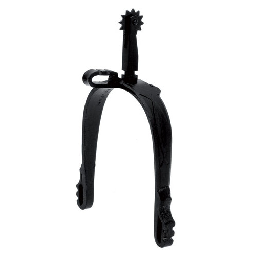 Espuelas realizadas de forma artesanal en hierro pavonado negro. Se comercializan por pares sin correas. Todas las espuelas ROLDAN tiene posibilidad de ruleta con pinchos inglesa, ruleta con pinchos vaquera ó ruleta plana sin pinchos.
