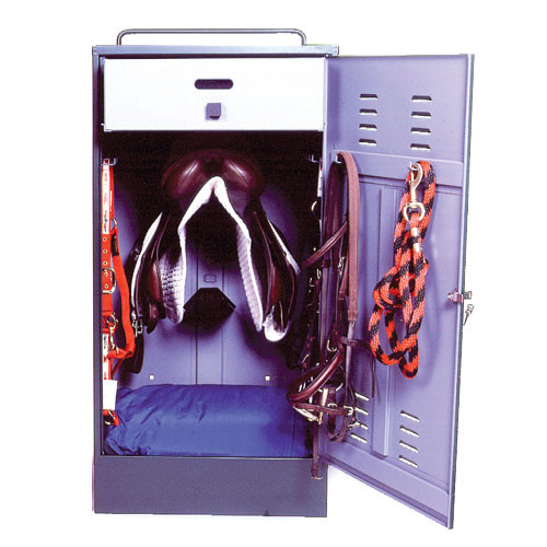 Cerradura individual con llave, cajón interior, dos portasillas con posibilidad de colocar a diversas alturas y multitud de ganchos porta- bridas y otros objetos. Varias posibilidades de pintura o galvanizado. Asa para fácil transporte. Dimensiones: 128x60x60 cm. Peso: 47 kg. Colores: galvanizado, azul y verde.