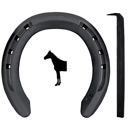 Con sistema RADIUS. En este sistema las pestañas se sitúan fuera del área de la herraduras. Las pestañas se añaden a la herradura y por tanto no se merma la superficie de apoyo de la herradura. En este caso el casco no debe ser retocado en sus paredes para adaptarlo a las pestañas de la herradura. Con diseño ROLL-OVER.