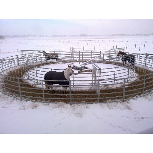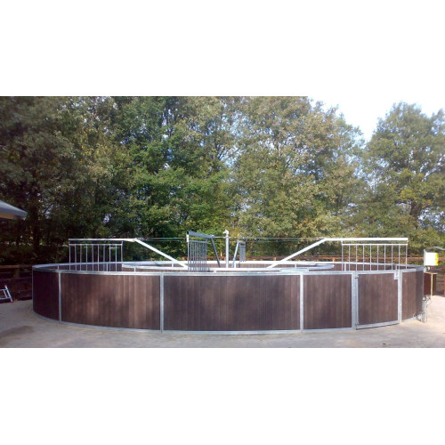 Pantallas divisorias ajustables completamente electrificadas (incluido pastor eléctrico), en caminadores de hasta 16 m. de diámetro las pantallas van equipadas con 10 barras de aluminio de 1500 mm. y a partir de 16 m. la torre central es de mayor altura y las pantallas son de 14 barras de aluminio.