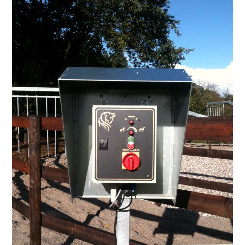 Caja de control aprobada por la CE con función auto reversible, 3 sentidos de marcha: izquierda - derecha - automático, regulador de velocidad y parada de emergencia.