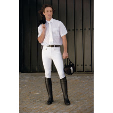 Pantalón hombre ajustado con culera de piel sintética. Incluye dos bolsillos frontales..
