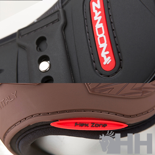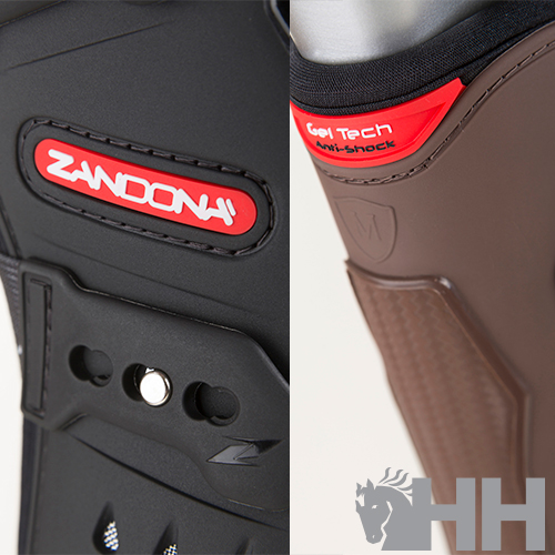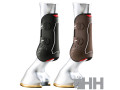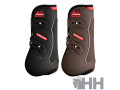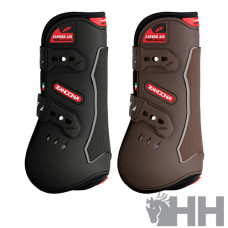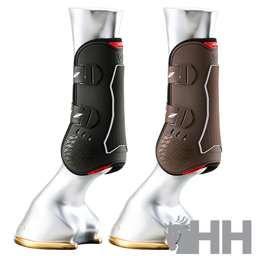 Fibra de carbono bajo la carcasa para proteger las articulaciones de la fricción externa y mejorar la resistencia a los choques. Zona Flex interna para libertad de movimiento. Dispone de correas elásticas que cierran de manera segura, con desenganche rápido. Ajuste perfecto para la extremidad del caballo.