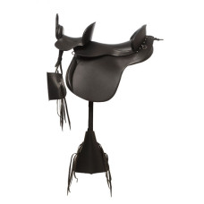 Asiento de goma latex. Faldon estilo español Rodillera/Taco exterior. Baste relleno de la..